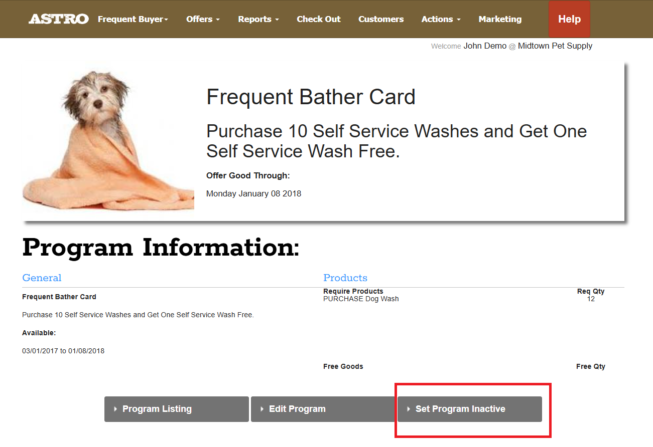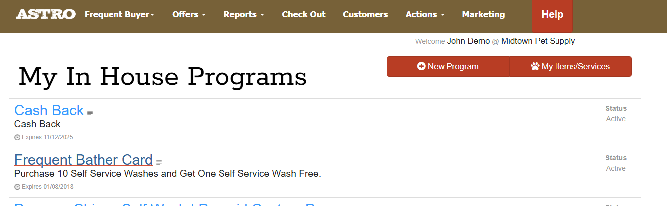 A In-House program is any loyalty program that operates outside of a manufacturer sponsored program or offer. Most commonly these include programs for grooming, self service dog washes, nail trimming & other services, as well as programs for smaller feeder animals such as crickets.
