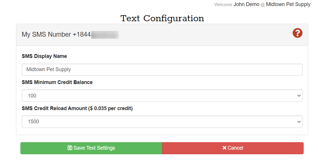 You can configure your text credit balance to automatically reload once your credit balance dips below a set amount. This will help to ensure that every time you draft and queue a new SMS text message to your customers that it will be able to be sent right away without having to reload your balance.