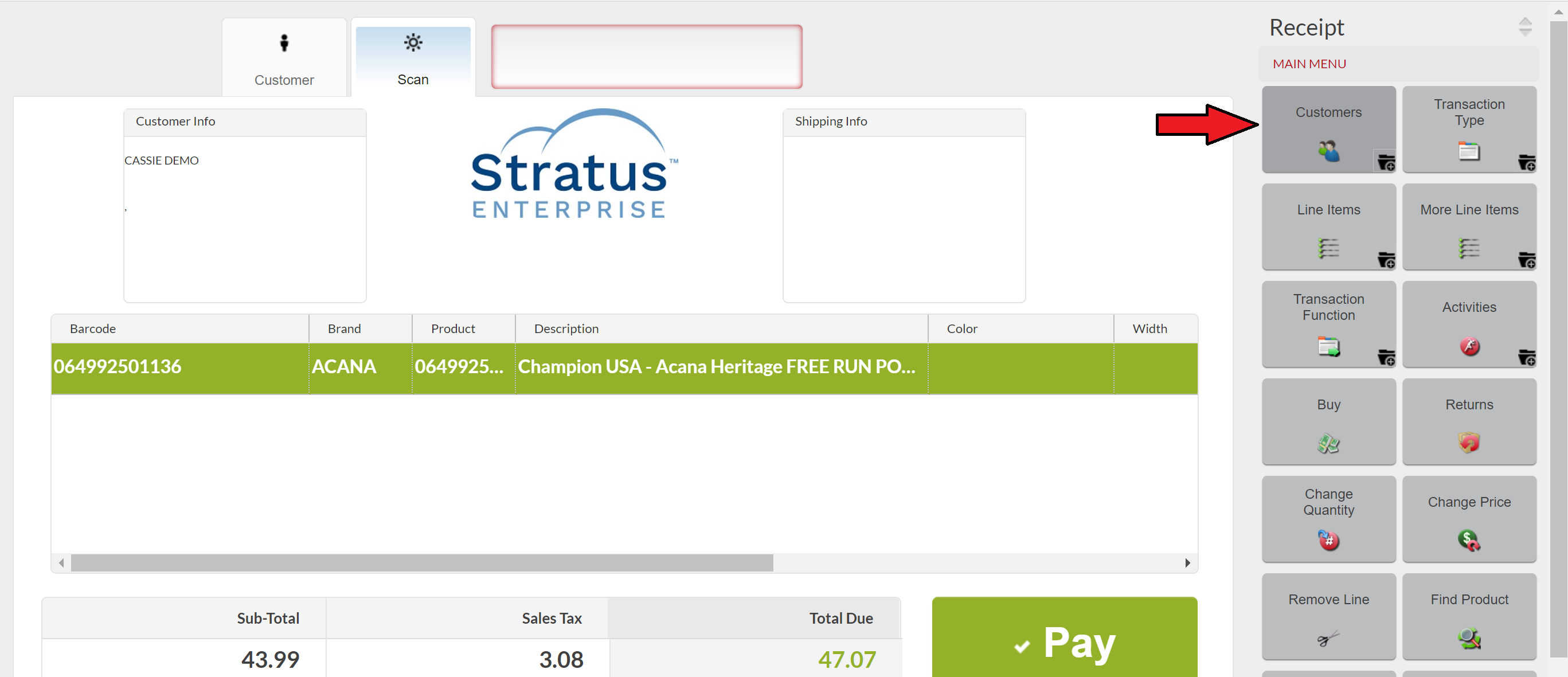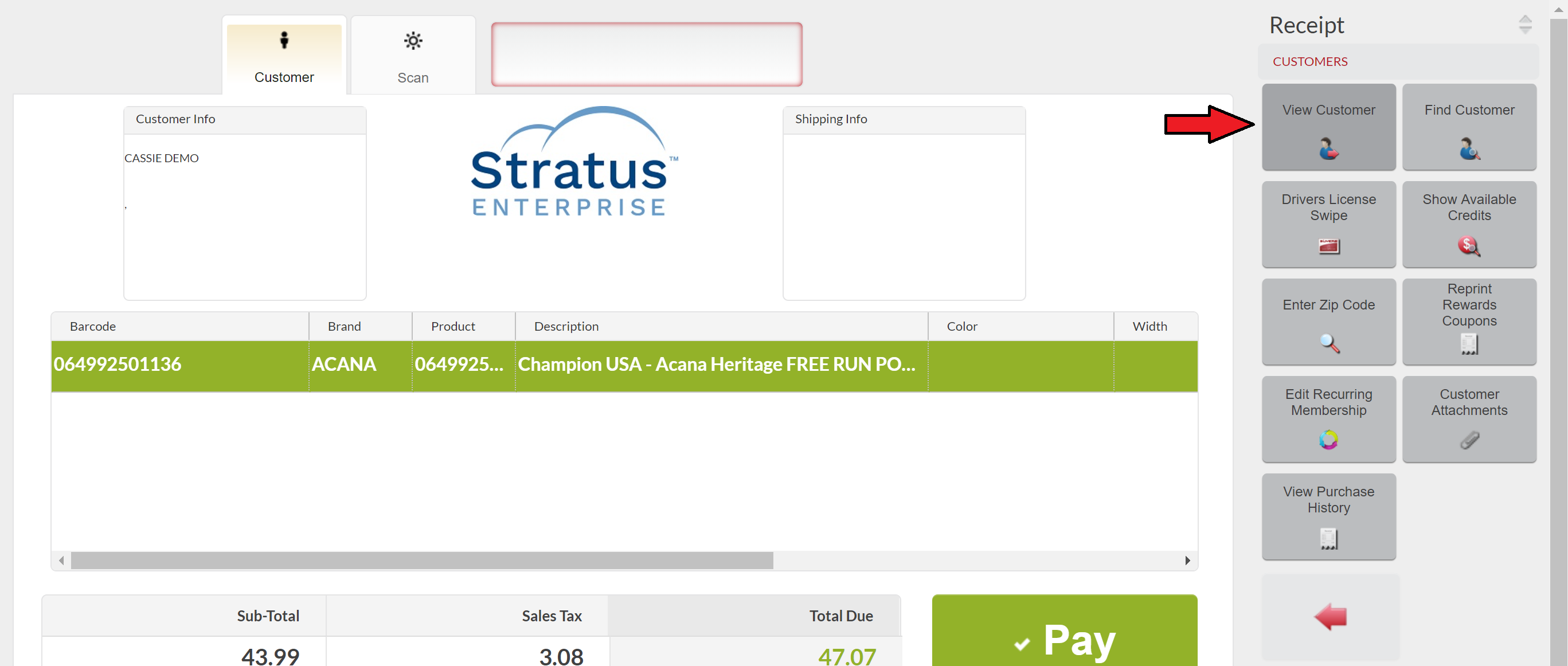 Vous devriez maintenant voir les informations qui viennent d'ajouter sous Informations sur le client sur l'écran du point de vente et sélectionner maintenant "Payer".