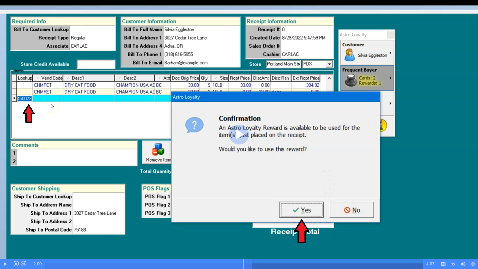 2. Si vous sélectionnez Oui. Le rabais spécial Astro LoyaltyLes étapes de configuration seront appliquées à la vente.