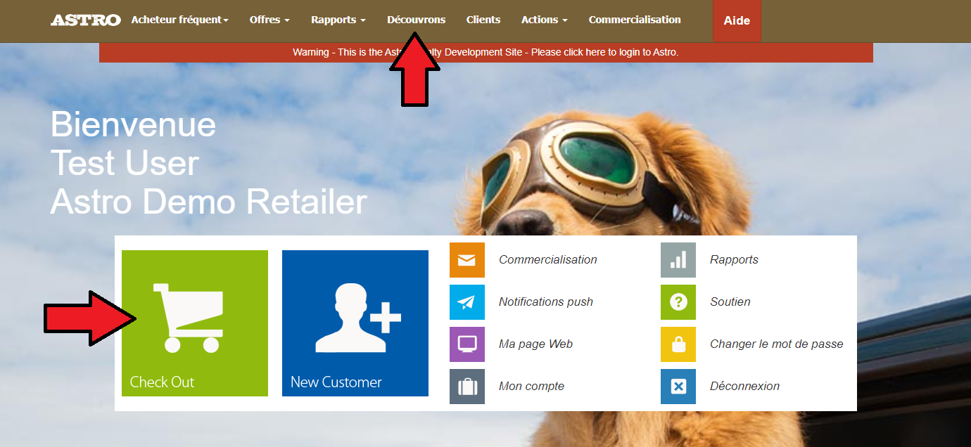 1. Sélectionnez Decouvrons En haut de votre écran, ou cliquez sur le bouton Check Out sur la page d'accueil.