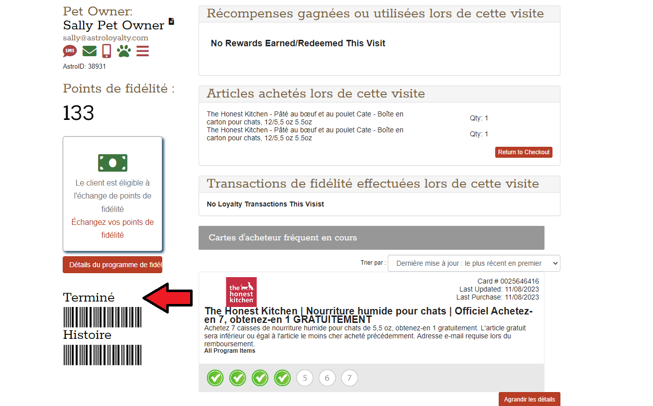 Si votre client a déjà une carte d'acheteur fréquente, vous pouvez également cliquer sur la prochaine fente de poinçonnage vide disponible pour ajouter des articles.