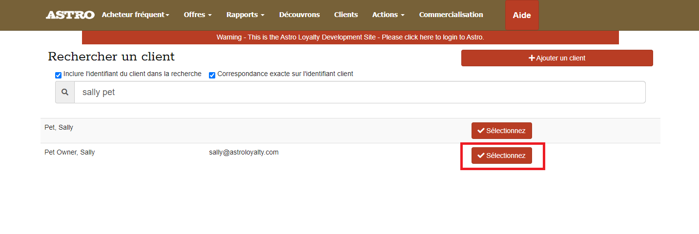2. Recherchez le client. Saisissez le prénom, le nom, le numéro de téléphone ou l'adresse e-mail. Une fois que vous voyez le client que vous recherchez, cliquez sur Sélectionnez bouton à côté de leurs informations.