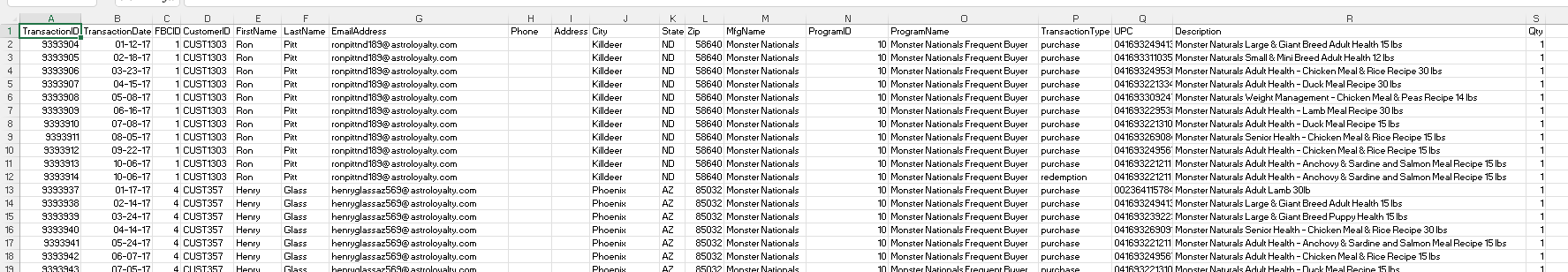 posreports@astroloyalty.comVous pouvez choisir les programmes fréquents d'acheteurs auxquels vous souhaitez participer, ainsi que la fréquence à laquelle vous souhaitez soumettre des informations d'échange à Astro. Le plus courant est de soumettre les rapports mensuels.