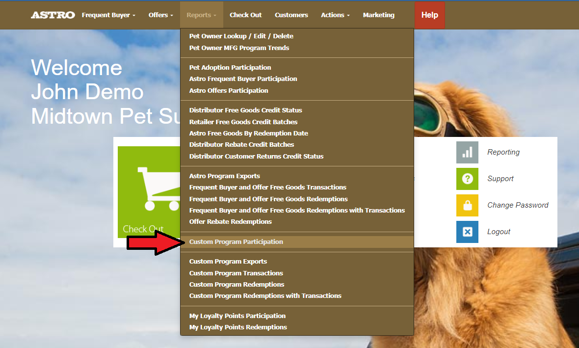 Si vous vous abonnez à Programmes personnalisés Vous aurez également accès à un rapport de participation pour eux dans votre menu en-tête Rapports.